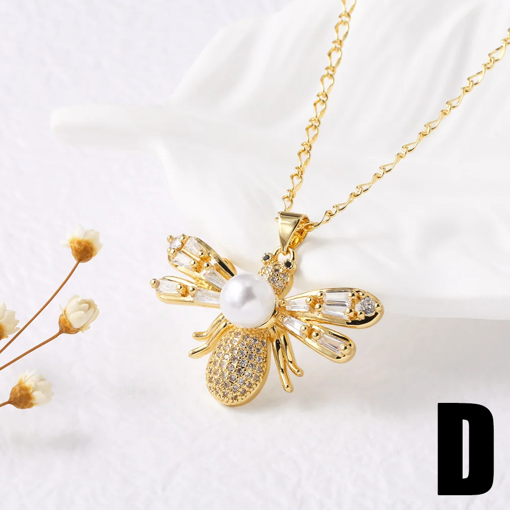 ASJEWELRY White Pearl Shell Bee & CZ Crystal Heart Necklace for Women – Elegant Zircon Jewellery Gift