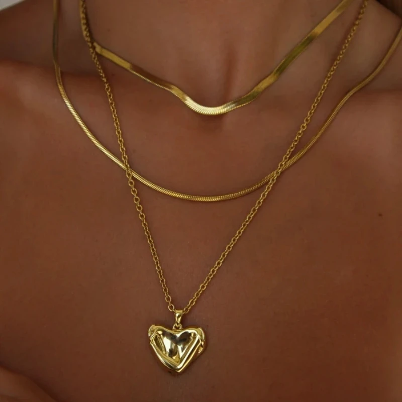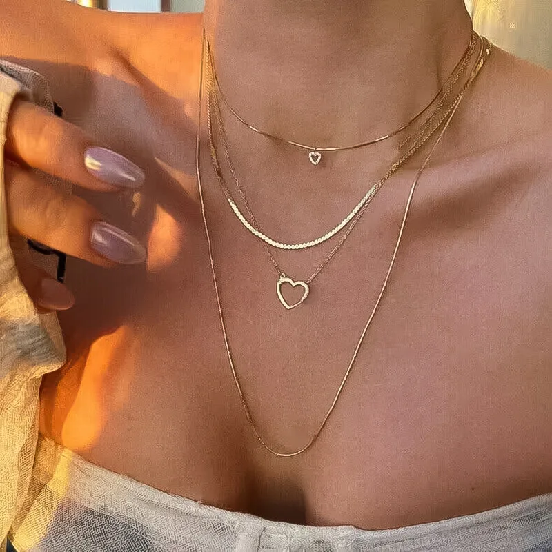 Bls-Miracle Gold Heart-Shaped Multi-Layer Necklace for Women – Trendy Adjustable Chain Y2K Pendant Jewellery