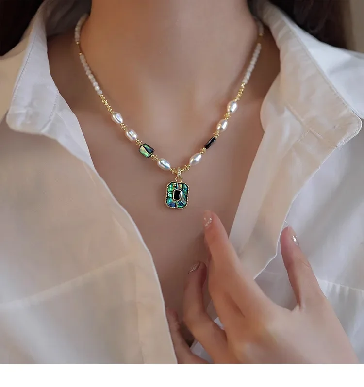 Crafted with shimmering freshwater pearls and natural abalone shell, offering a luxurious and sophisticated finish. -