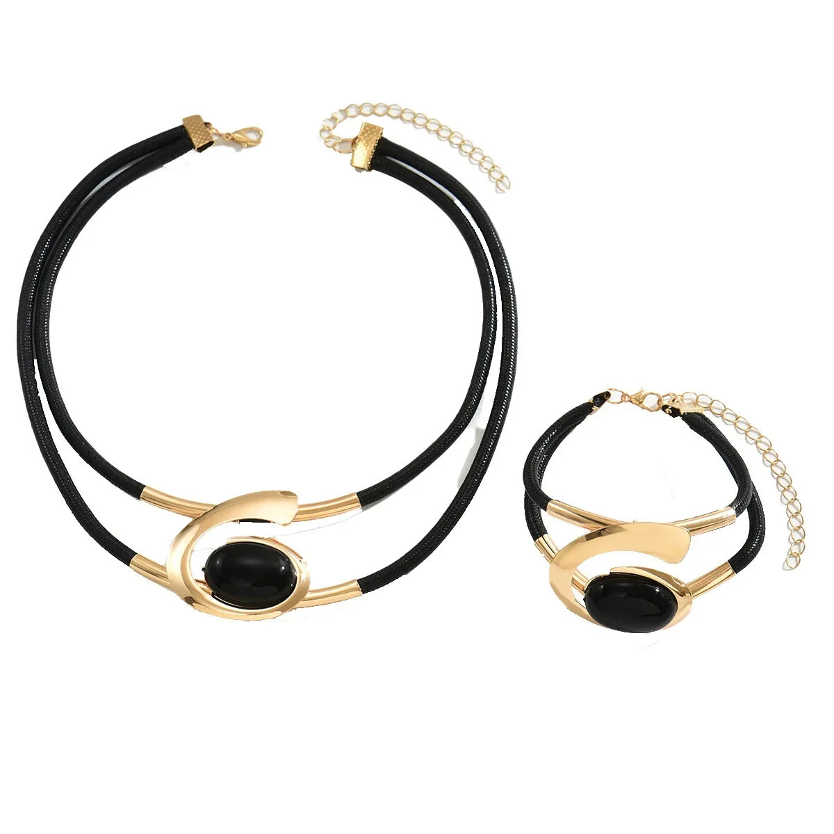 Geometric Jewelry Set for Women – Luxury Gemstone Necklace & Bracelet Set | Elegant Cross-Border Designer Style