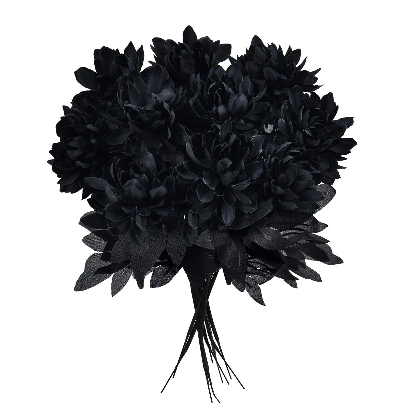Halloween Black & Burgundy Dahlia Artificial Flowers – Creepy Chic Branch Arrangement for Home & Events