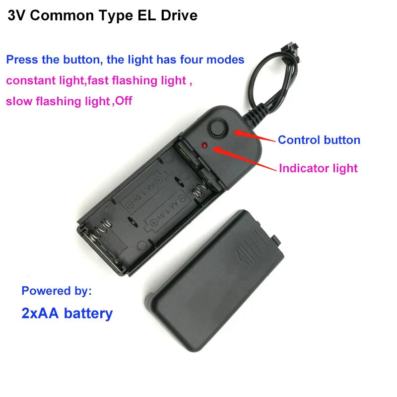 💡 Glowing EL Wire LED Lights – Steady, slow flash, or fast flash modes to match your vibe.