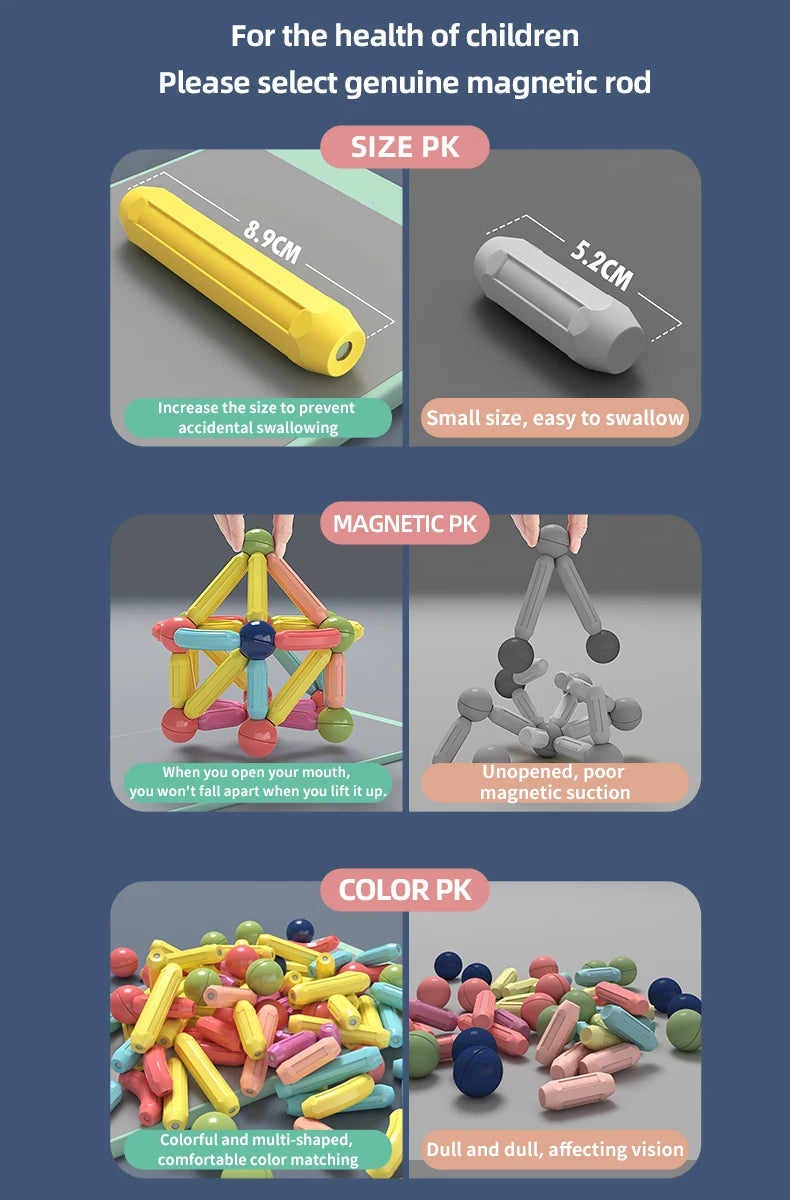 Magnetic Building Sticks Blocks – 3D STEM Construction Puzzle Toy Gift for Kids & Toddlers