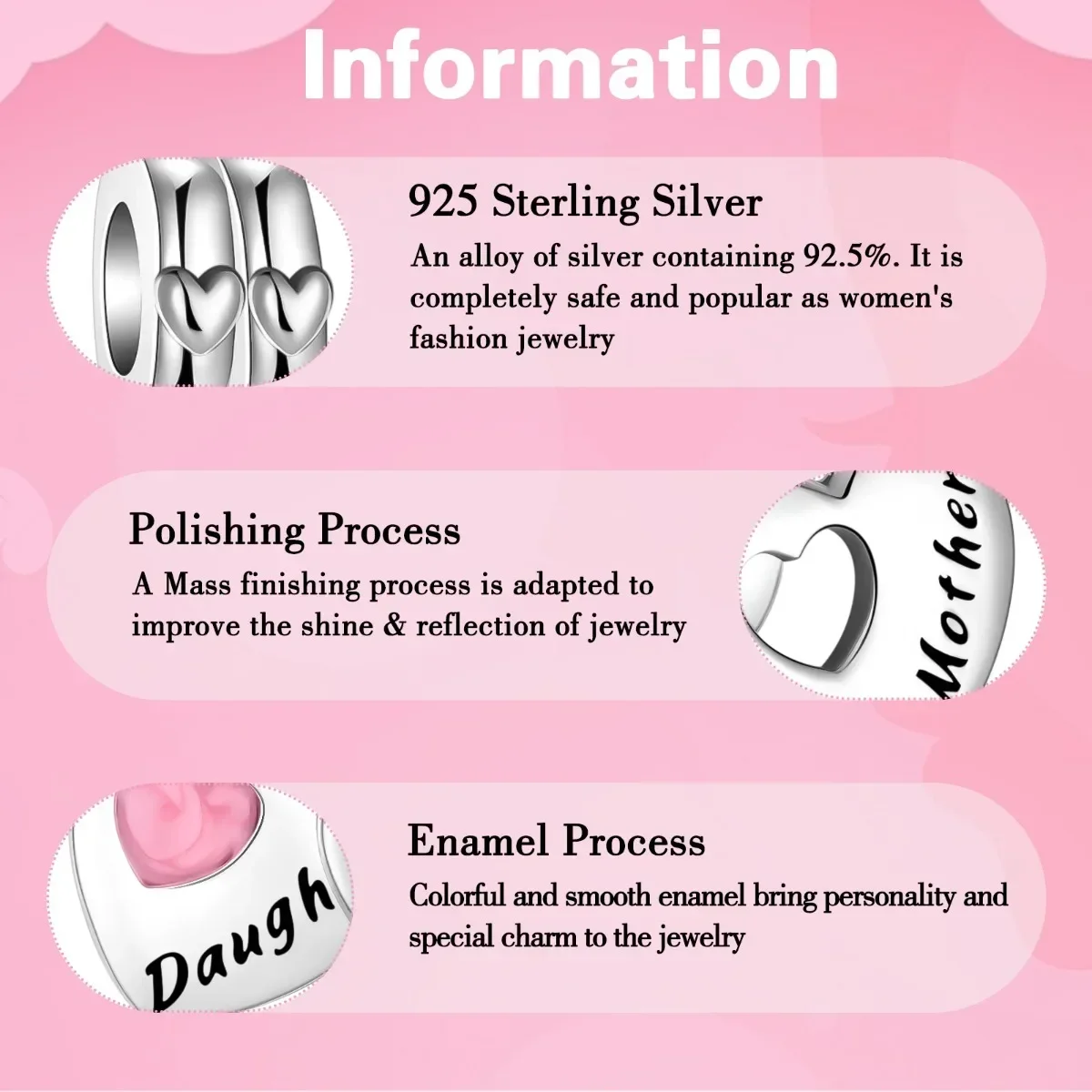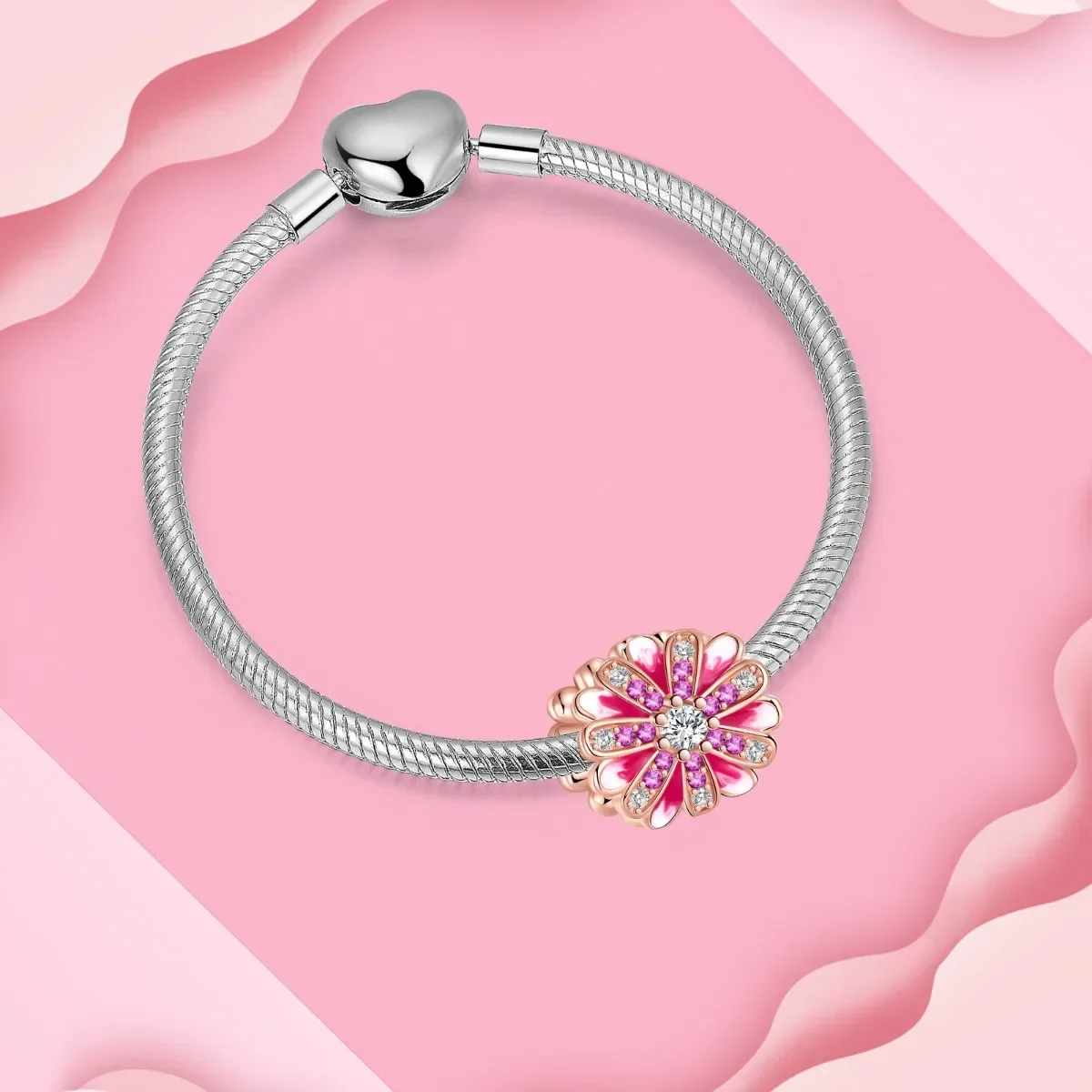 925 Sterling Silver Pink Daisy Flower Spacer Charms – Butterfly, Heart & Bird Beads for DIY Bracelet & Necklace Jewellery
