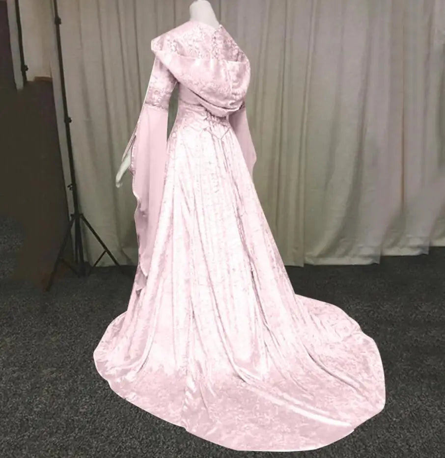 Women Deluxe Witch Dress Medieval Costume Vintage Embroidered Renaissance Gothic Hooded Vampire Gown Dress Cosplay