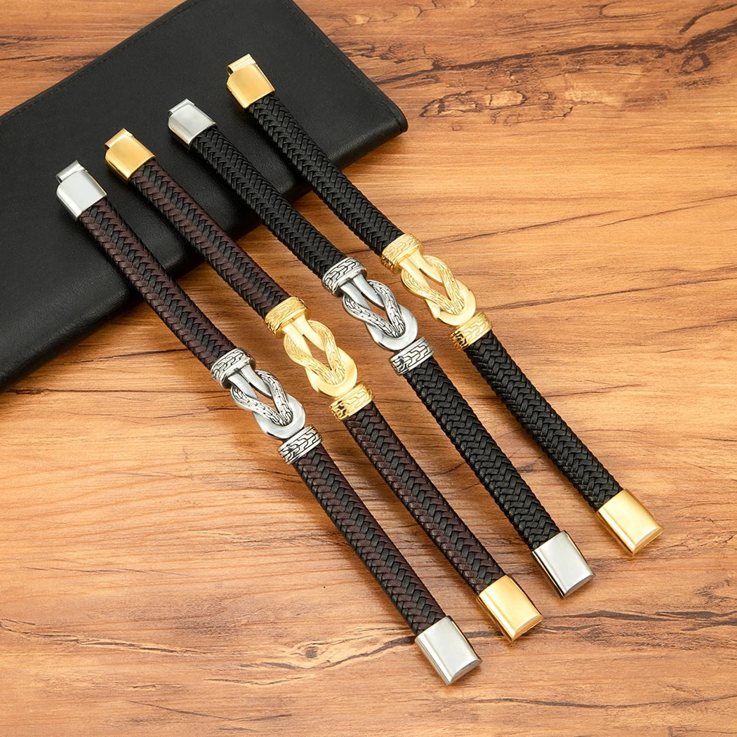 XQNI Stainless Steel Bracelets Weave Black/Brown Leahter Magnetic Buckle Rope Jewelry Accessories Bangles Gifts for Men Friend